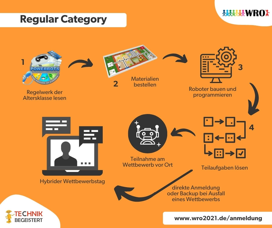 In der Saison 2021 verzichten wir bei allen Regular Category Wettbewerben auf das Neuzusammenbauen der Roboter. Zudem ist es möglich, dass die Bauphasen verkürzt und die Anzahl an Wettbewerbsrunden angepasst werden. Darüber hinaus erhalten alle Teams eine Auszeichung mit Bronze, Silber oder Gold. Alle Anpassungsmöglichkeiten sind in diesem Dokument erläutert.